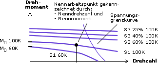 (thermisch) zulässigen Drehmomente als Funktion der Drehzahl in Abhängigkeit